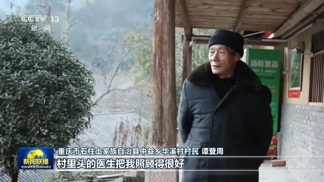 重庆市石柱土家族自治县中益乡华溪村村民 谭登周:总书记在我家里来看粮仓、冰箱、灶台,穿不穿得暖和,吃不吃得饱这些,听说我住院的话报销90%,总书记听了很高兴。这几年来,国家的政策越来越好,村里头的医生把我照顾得很好,我的病一直控制得很好的。
